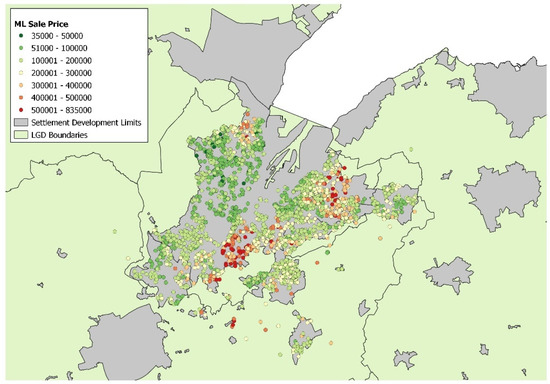 Figure 2. Distribution of sales price across the Belfast Housing Market Area in 2021.