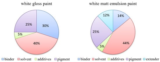 The binding of the pigments is carried out by the binder or vehicle, but also oils, proteins, waxes, resins, or polymers, dissolved in a diluent that dries to a hard film are used [17]. Diluents applied in the paint industry are either organic solvents or water, depending on the consumer needs.