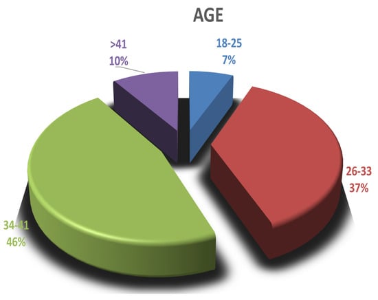 Figure 2 shows the age distribution of the survey respondents. It shows that almost half of the respondents, i.e., 46% were between the age of 34–41 years old and 37% were in the age bracket 26–33.