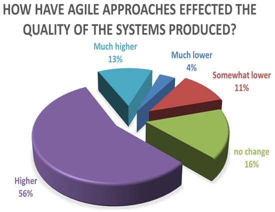 Another important study was conducted from 13 February to 24 March 2014, in which 114 participants took part [25]. According to this study, 10.77% of respondents termed the effect of Agile adoption on the organization as “Great Success”, 32.31% termed it as “Success”, 40% termed it as “Neither a success nor a failure”, 4.62% termed it as failure and 1.54% termed it as “Too early to tell”.