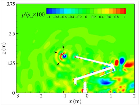 - Ffowcs Williams, J.E.; Hawkings, D.L. Sound generation by turbulence and surfaces in arbitrary motion. Philos. Trans. R. Soc. Lon. Ser. A Math. Phys. Sci. 1969, 264, 321–342. [Google Scholar]