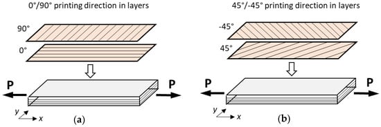 3D-Printed parts for tensile testing (a) cross−ply (b) angle−ply printed laminates.