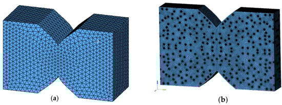In the second computational method (CM-2), the tensile testing data of 3D-printed test coupons are utilized for modelling. The tensile test data of unidirectionally 3D-printed parts are shown in Figure 4. The FE models of RVEs for this computational method are shown in Figure 5a for the parts made of ABS material and Figure 5b for 3D-printed parts made of ABS + sCF composite material.