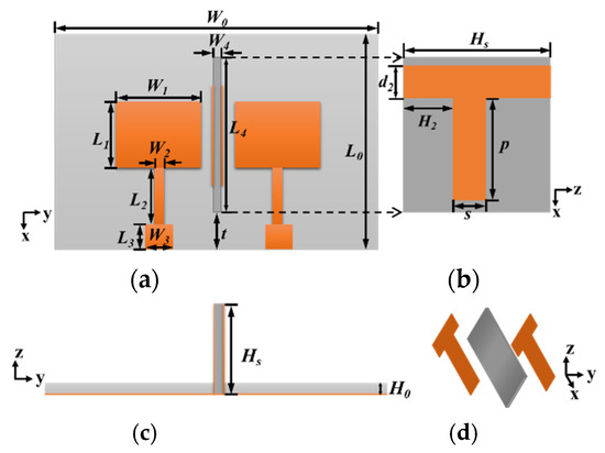 - Wang, Y.-Y.; Zhang, S.-F.; Yan, Y.-T.; Yu, X.-H.; Kishk, A.A. Vertical-Wall between Tightly Spaced Patch Antennas for Decoupling and Radiation Pattern Correction. In Proceedings of the IEEE International Symposium on Antennas and Propagation and USNC-URSI Radia Science Meeting (APS/URSI), Singapore, 4–10 December 2021. [Google Scholar]