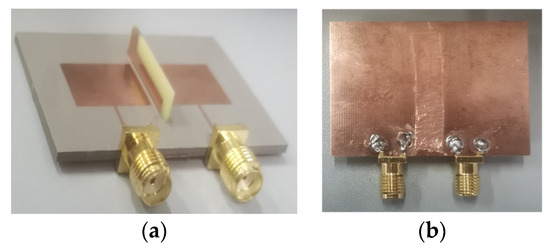 - Niu, Z.-C.; Zhang, H.; Chen, Q.; Zhang, T. Isolation Enhancement for 1 × 3 Closely Spaced E-Plane Patch Antenna Array Using Defect Ground Structure and Metal-Vias. IEEE Access 2019, 7, 119375–119383. [Google Scholar] [CrossRef]