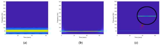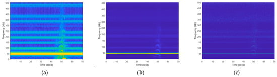 The disturbing signal was subjected to short-time Fourier transform, continuous wavelet transform, and synchrosqueezed wavelet transform, respectively, to extract power spectra. “Bump” wavelet was adopted by both wavelet methods, as shown in Figure 3: