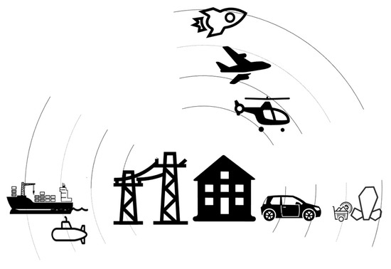 The power frequency electromagnetic field signal spreads over a long distance, affects a wide range, and crosses media. It can be applied in the following major fields, namely detection of flight targets, land targets, marine targets, and unexploded ordnances, as well as mineral exploration, as shown in Figure 12: