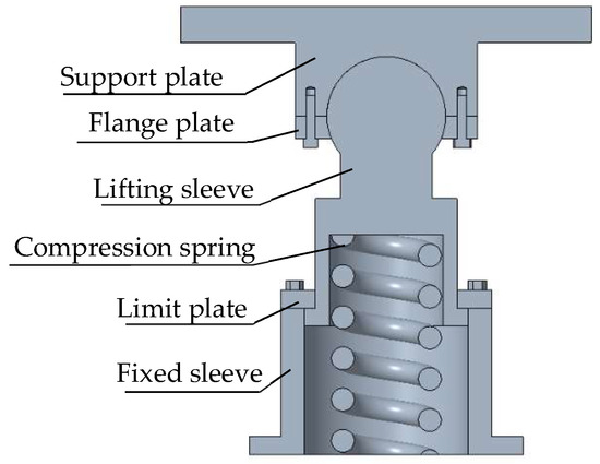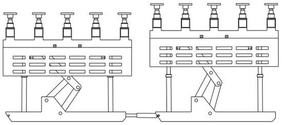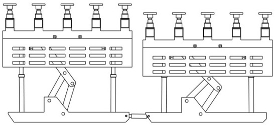 Based on existing temporary support equipment and traditional hydraulic supports for roadways, Yang [19] designed an inchworm SmTS for coal mine roadways. This equipment realized the effective support of the roof and independent movement under the control of the hydraulic system, could move in parallel with the roadheader, and improved the adaptability of the SmTS to roadways with different sizes. Wang [20] proposed an SmTS composed of two groups of supports. This device moved by way of the two groups of supports supporting each other and moving forward alternately. It could realize the parallel operation of excavation and support, which improved the automation of temporary support. Yang [21] designed a walking equipment for a roadway, which realized the walking forward by sliding a guideway and two-way telescopic support. The equipment could realize automatic mesh laying and could cooperate with the bolt drill installed on the support to complete the permanent support of the roadway. Yao [22] designed a kind of SmTS which included a walking mobile support and hydraulic column and could provide temporary support and permanent support at the same time. The SmTS designed by Liu [23] was composed of eight single groups of supports, and the pushing device realized the step forward. The roof beam, side protection mechanism, and support leg were all independent structures, which improved the adaptability of the temporary support to the complex working conditions of the roadway.