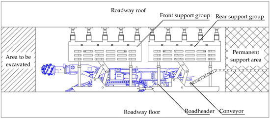 - Cai, L.; Meng, F.L.; Li, S.C.; Guo, W.Y. Temporary Support Technology of Roadheader. Coal Mine Mach. 2013, 34, 189–191. [Google Scholar] [CrossRef]