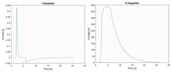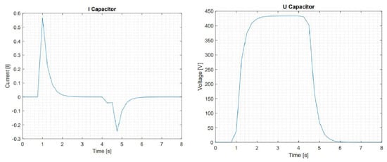 Data such as temperature and voltage are measured relatively constant to be able to calculate the different states (e.g., SOC) as well as possible; a BMS can measure these values in a time interval around 200–300 µs [35]. The amount of data which is produced and collected by the BMS does not exceed the bandwidth of the CAN communication yet. Due to that, CAN, UART, and RS232 are common communication channels inside the BMS modules as well as between the BMS and other subsystems. To avoid over-charge and over-discharge currents, the BMS communicates to the junction box and therefore switches the high voltage contactors as well as the contractor of the pre-charging circuit. The pre-charging contractor is in line with a resistor to avoid high currents at the startup of the system. Once the capacitor of the DC intermediate circuit is preloaded, the junction box closes the contractor and opens the precharging contractor. Furthermore, the BMS handles the balancing of each battery module, which is why the cell measurement units on top of the single battery cells or battery modules also may have balancing modules integrated or attached. Since manufacturers need to isolate the high voltage battery pack from the chassis and want to avoid short circuits between them, the isolation resistance must be measured and analyzed too. To do so, an iso-meter is implemented between the high-voltage lines and the ground (chassis). Figure 3 and Figure 4 illustrate exemplary current and signal diagrams of a BMS.