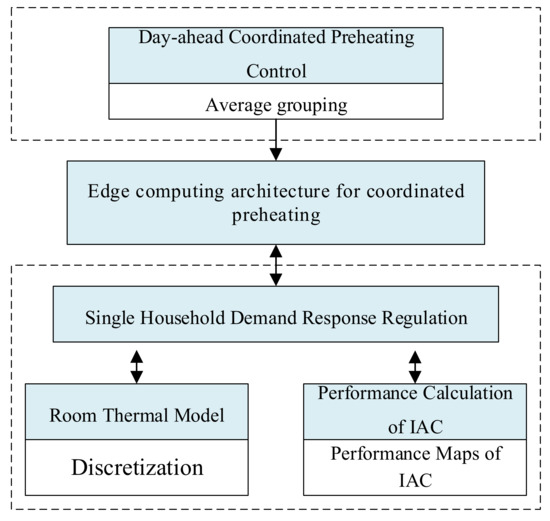 To formulate the single household regulation model with IAC, a detailed ETP model of residence and the performance map of the IAC model need to be established, which can link the indoor temperature change with the user energy consumption scheduling. Then the grouping coordinated preheating mechanism based on edge computing and central regulation framework is proposed, which links the single household regulation model and the changes of marginal cost curve.