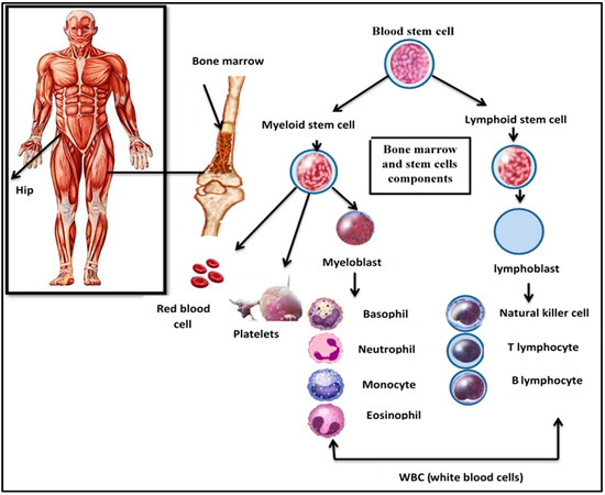 Leukemia is a cancer of the bone marrow that is divided into four types: acute myeloid leukemia (AML), acute lymphoblastic leukemia (ALL), chronic lymphoid leukemia (CLL), and chronic myeloid leukemia (CML). The second most prevalent type of acute leukemia in adults is acute lymphoblastic leukemia. In the bone marrow, it affects lymphocyte-producing cells [1]. The bone marrow and stem cell components are illustrated in Figure 1.