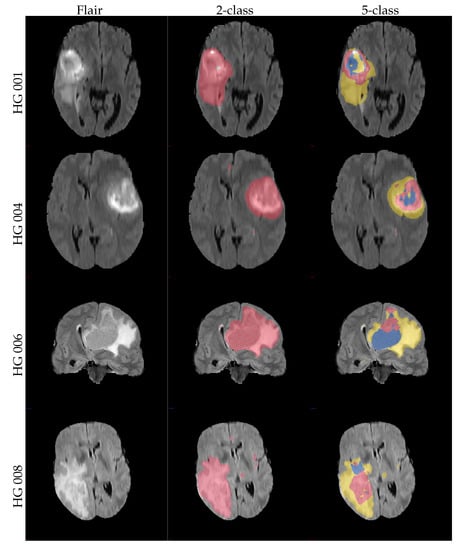 - Menze, B.H.; Jakab, A.; Bauer, S.; Kalpathy-Cramer, J.; Farahani, K.; Kirby, J.; Burren, Y.; Porz, N.; Slotboom, J.; Wiest, R.; et al. The Multimodal Brain Tumor Image Segmentation Benchmark (BRATS). IEEE Trans. Med. Imaging 2015, 34, 1993–2024. [Google Scholar] [CrossRef]
