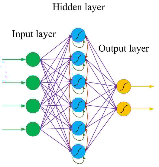 Figure 4 shows the typical structure of an RNN, which is similar to but different from the traditional deep neural network (DNN). The similarity lies in that the network models of DNN and RNN are fully connected from the input layer to the hidden layer and then to the output layer, and the network propagation is also sequential. The difference is that the internal nodes of the hidden layer of the RNN are no longer independent of each other but have messages passing to each other. The input of the hidden layer can be composed of the output of the input layer and the output of the hidden layer at a previous time, which indicates that the nodes in the hidden layer are self-connected. It can also be composed of the output of the input layer, the output of the hidden layer at the previous moment, and the state of the previous hidden layer, which indicates that the nodes in the hidden layer are not only self-connected but also interconnected.