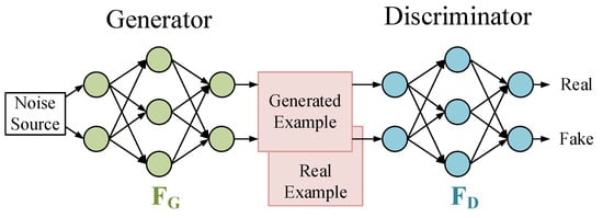 The GAN (generative adversarial network) is a machine learning model designed by Goodfellow et al. [30] in 2014. Inspired by the zero-sum game in game theory, this model views the generation problem as a competition between generators and discriminators. The generative adversarial network consists of a generator and a discriminator. The generator generates data by learning, and the discriminator determines whether the input data are real data or generated data. After several iterations, the ability of the generator and discriminator is constantly improved, and finally the generated data are infinitely close to the real data so that the discriminator cannot judge whether they are true or false. The GAN is shown in Figure 5.