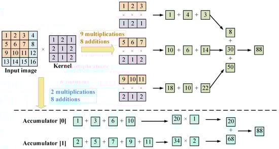 - Kala, S.; Mathew, J.; Jose, B.R.; Nalesh, S. UniWiG: Unified winograd-GEMM architecture for accelerating CNN on FPGAs. In Proceedings of the 2019 32nd International Conference on VLSI Design and 2019 18th International Conference on Embedded Systems (VLSID), Delhi, India, 5–9 January 2019; pp. 209–214. [Google Scholar] [CrossRef]