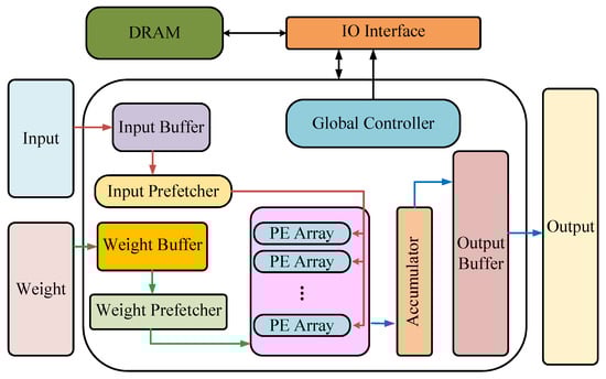 With the rise of the short video industry and the advent of the era of big data and the Internet of Things (IoTs), the data created by people in recent years has shown a blowout growth, providing a solid data foundation for the development of artificial intelligence (AI). As the core technology and research direction for realizing artificial intelligence, deep learning based on neural networks has achieved good results in many fields, such as speech recognition [1,2,3], image processing [4,5,6], and natural language processing [7,8,9]. Common platforms to accelerate deep learning include central processing unit (CPU), graphics processing unit (GPU), field-programmable gate array (FPGA), and application-specific integrated circuit (ASIC).
