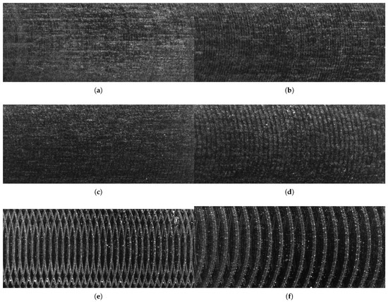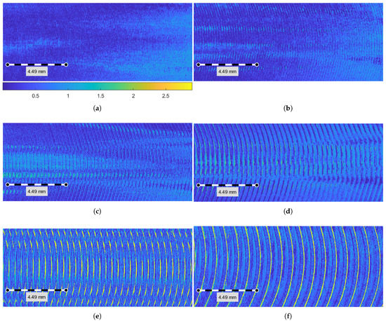 Raw RTI data of surface state obtained by an end milling process from a surface assembly for roughness control (); ; : (a) Surface R1; ; ; (b) Surface R2; ; ; (c) Surface R3; ; ; (d) Surface R4; ; ; (e) Surface R5; ; ; (f) Surface R6; ; .
