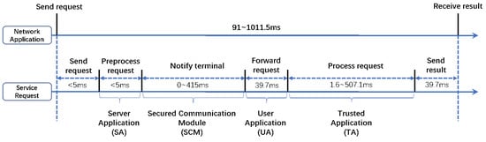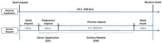 In authorized mode, the server processes service requests in the server enclave under user authorization, as shown in Figure 4. The total overhead of processing a service request varies from 16.1 ms to 168.6 ms, and the major part is the request-processing cost, which is evaluated in Section 5.3.