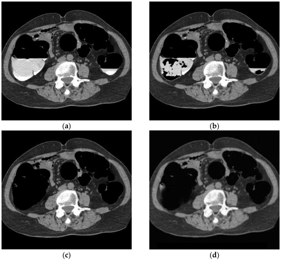 The cleansed images generated using the proposed method are shown in Figure 7. Although barium was removed up to the intestinal wall using the proposed method, no cases of excessive removal from the intestinal tract were observed.