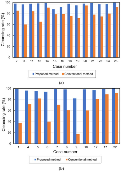 Cleansing rates in cases with good and bad pretreatment. (a) Cleansing rates in cases with good pretreatment and (b) cleansing rates in cases with bad pretreatment.