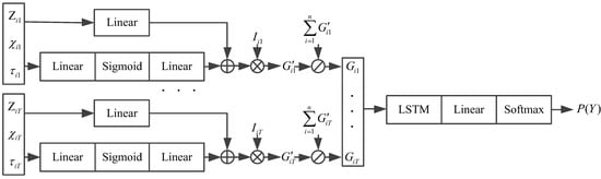With the development of deep learning technology, fitting complex functions using a deep network has a favorable effect. In particular, recurrent neural networks (RNN) and long- and short-term memory networks (LSTM) [19] have beneficial effects on sequential feature extraction and sequential rule learning [20]. Trajectory prediction methods based on deep neural networks have also been widely applied in the field of aircraft trajectory prediction [21,22]. Recently, the temporal network has also been used in the trajectory prediction of reentry glide targets. Cai Y.L. et al. [23] designed a trajectory classifier and predictor based on the LSTM network and realized the trajectory prediction of non-ballistic targets driven by pure data. Xie Y. et al. [24] designed a gated recurrent unit (GRU) network based on a double-channel network that generates a prediction data set and carried out the trajectory prediction of high-speed targets. Using deep learning, Zhang J.B. el al. [25] identified the HGV’s motion state according to state information then the appropriate prediction scheme was adopted to predict the trajectory robustly. Bartusiak et al. [26] used methods from natural language processing to model the flight phases and trajectories, and learned the grammar from the HGV trajectories to realize prediction.