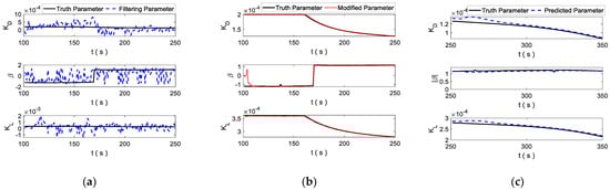 Lateral prediction effect of case 2: (a) is the lateral prediction effect within 100 s; (b) is the lateral prediction effect within 200 s; (c) is the lateral prediction effect within 300 s.
