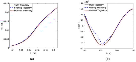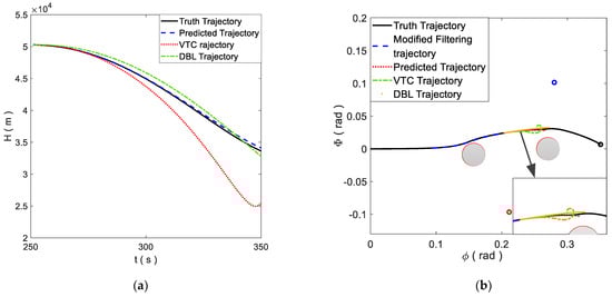 The second type of method to predict trajectories involves identifying the maneuvering mode of the target. Ferreira et al. [8] and Chen et al. [9] analyzed the long-period motion of equilibrium glide, fitted skip glide into the oscillation curve by Liouville transformation and the multi-scale theory method, and provided the formula of skip times. Vinh et al. [10,11] analyzed the second-order approximate solutions of skip glide and equilibrium glide of targets with the constant attack angle, but the solutions were fairly complex. Lu et al. [12] regarded the quasi-equilibrium glide state of lift vehicles as a regular perturbation problem, decomposed the longitudinal trajectory of quasi-equilibrium glide into the combination of equilibrium glide and high-order terms, and analyzed the error between the real solution and the low-order solution. Cheng Y.P. et al. [13] accomplished trajectory prediction by analyzing the maneuvering mode of the target, generating a corresponding training set, training a support vector machine classifier, and combining it with an extended Kalman filter algorithm. However, the above methods only have good effects on trajectory prediction in partial maneuvering modes, while using training sets or networks to predict trajectories lacks a modeling basis, which may reduce the prediction accuracy and lead to the rapid divergence of prediction errors
