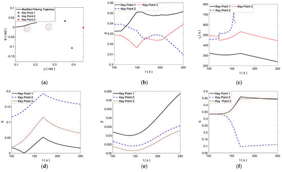 It can be seen that, based on the proposed model, the approximate lateral trajectories for key points can be obtained quickly, which can be used for the simple calculation of the time-to-go of the target. Some key points will gradually leave the target’s reachable region, and their time-to-go reaches infinity. The proposed model can provide more auxiliary information for the later analysis of the attack intention of the target.
