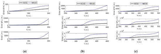 Variation of prediction error: (a) represents the longitudinal prediction error; (b) represents lateral prediction error; and (c) represents the whole prediction error.