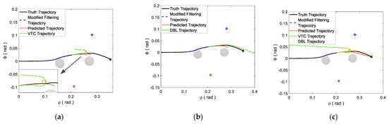 Comparison of lateral prediction effect among different methods: (a) is the lateral prediction effect of VTC method; (b) is the lateral prediction effect of DBL method; and (c) is the long-term lateral prediction effect.