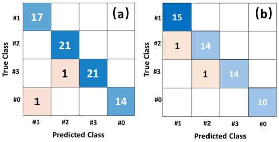 (a) The confusion matrix of the 2D CNN and (b) the confusion matrix of the 1D CNN.