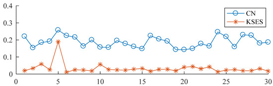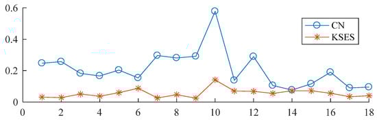 CN and KSES values of each component of the envelope spectrum of the 2056th set of data.