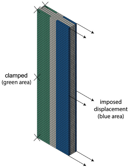 The fitting results are an estimation of the parameters associated to each model, i.e., the mechanical properties under a nonlinear framework. They constitute the inputs for the FEM simulations conducted to compare the experimental and numerical results. Several FEM simulations were carried out considering C3D8H elements mesh (8-node hybrid hexahedral element quadratic approach with 8 nodes [29]).