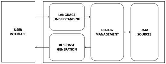 Adamopoulou and Moussiades [6] presented a general architecture of a chatbot, as shown in Figure 1, that includes: a language-understanding module that handles the input data from the user; dialog management, which handles action execution and information; and a response-generation module that outputs the information for the user.