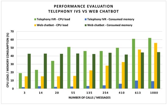 In the first round of evaluation, we made a critical comparison between the two approaches based on both resource consumption and QoS metrics. The results show that the IVR solution is a better choice in terms of resource consumption. Our analysis indicates on average 16% less CPU load for the telephony IVR solution in comparison to the web-based solution. In terms of memory consumption, we conclude that the telephony-based approach has better performance than the web-based chatbot, with an average of 38.45%.