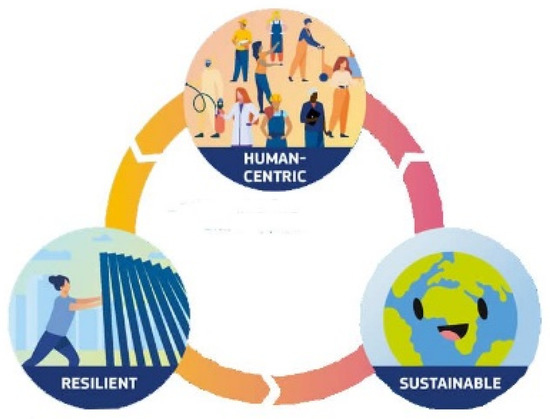 Industry 5.0 reflects a fundamental shift of companies and economies towards a new paradigm for balancing economic development with solving social and environmental problems [1]. It focuses on three interconnected core values: human-centeredness, sustainability, and resilience (Figure 1).