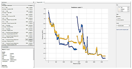 After importing the source data, it is possible to use the regression learner tool, which trains regression models for data prediction, without further data preparation. In the environment of the wizard, it will be the predictor, e.g., response [35,36].