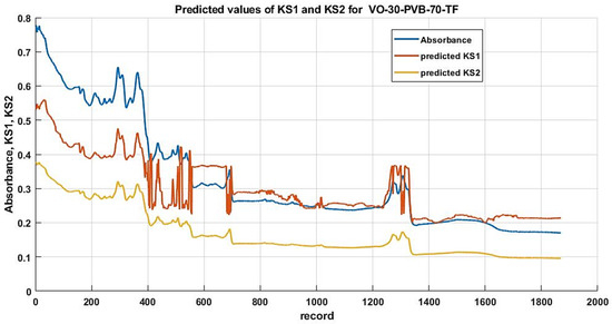 The next figure shows a graphical interpretation of gained data using the selected model. The values of “Absorbance” are measured and values of “KS1” and”KS2” are predicted.