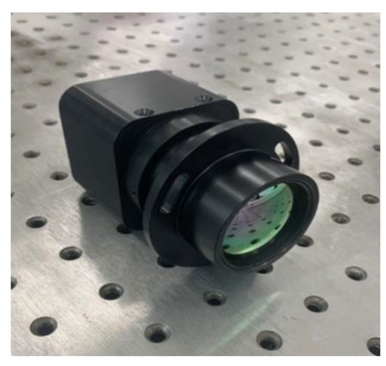 After completing the initial structure calculation, we release the curvature radius and aspheric coefficient of each surface for optimization. The final system optical path diagram is shown in Figure 1. It can be seen from the modulation transfer function in Figure 2 and the dot plot in Figure 3 that the MTF of the system at all wavelengths is better than 0.3 at the cutoff frequency of 1/2d(33 lp/mm), and the RMS diameter is less than 15 microns, that is, less than one pixel, except for the maximum field of view. The maximum field of view is actually the four corners of the detector. Thus, a slight drop in image quality has little impact on the overall imaging effect. The illumination of the full image plane is greater than 95%, which can ensure good imaging quality. Figure 4 shows the assembled wide band infrared lens. The broadband infrared detector is used in the imaging system, and its parameters are as follows: Operating spectrum: 3~5 μm, 6.8–14 μm. Pixel size: 25 μm. Resolution: 384 × 288. NETD: 40 mk@25 Hz. Frame rate: ≤50 Hz. Imaging mode: standard, frame difference, fusion. Pseudo color display: eight kinds.