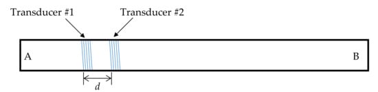 where d is the distance of two transducers, and λ is the wavelength of the guided wave at the frequency f. If only the guided wave propagating towards the right is needed, Equation (4) can be obtained by solving Equation (3):