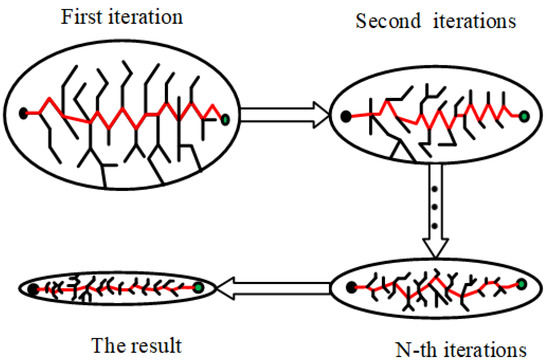 To search for the shortest path length in state space C, the IRRT* algorithm improves the subset state with the current solution . The can be expressed as