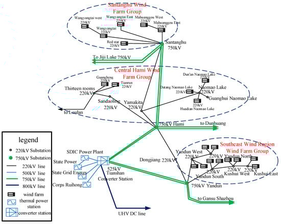 Schematic diagram of the power grid structure of the wind farm group near Santanghu.