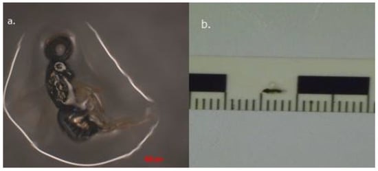 They lay eggs on fly pupa areas, and their larvae feed on them [46,47,48]. It is known from the literature [49,50] that parasitoid species have a series of strategies in finding their host and laying eggs. The selection process takes place in several stages and ensures that the parasitoid offspring can reach maturity. Among the selection criteria, we can mention: response to olfactory cues, aspects of locomotor activity, and behavioral response to the host. The number of infected pupae was small (2 pupae out of 16); in the pupae developed on pig tongue, we identified two Nasonia vitripennis individuals (Figure 5).