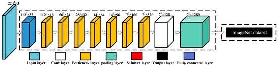 Google introduced the MobileNetV2 [26] network in 2018 as a lightweight convolutional neural network. Compared to conventional convolutional neural networks, the model has the following characteristics and benefits: (1) the depth separable (DWS) convolution has less operational costs and a number of network parameters; (2) the proposed inverse residual structure is more comprehensive for feature extraction with the deepening of network layers and solves problems such as gradient disappearance explosion; (3) the use of linear bottleneck (the last layer of the structure uses a linear layer) effectively reduces the loss of low-dimensional tensor features.