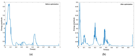 The energy amplitude of blasting vibration signal (a) before optimization and (b) after optimization.
