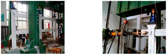 Vertical loading: A vertical load was applied on the top of the column to simulate the load from the floor slab in the actual project. First, it was loaded to 30% of the scheduled load. We checked whether the equipment was normal before loading it to the scheduled load. During the vertical loading test, the specified load was applied on the top of the frame column first and remained unchanged during the test.