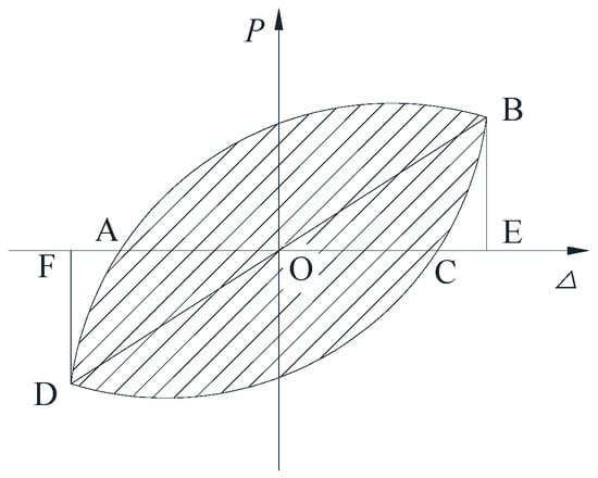The energy dissipation capacity of a structure or component is usually considered as the energy expression of its ductility. Energy dissipation capacity is an important index to measure the seismic performance of a structure and a direct expression of the seismic energy absorbed and dissipated by the structure. The energy dissipation performance of structural members is an important basis for the evaluation of their seismic performance. The equivalent viscosity coefficient an ordinary reinforced concrete frame is generally between 0.1 and 0.2. According to Jacobson’s equivalent viscous damping theory, the equivalent viscous damping coefficient of the frame was calculated. The calculation is shown in Figure 13 and the calculation formula is as follows: