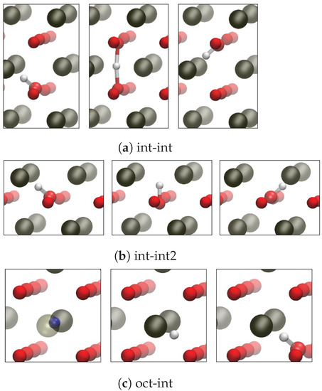 - Diffusion between int sites containing an O–H bond rotation (where the bond remains intact), which we label int-int2.