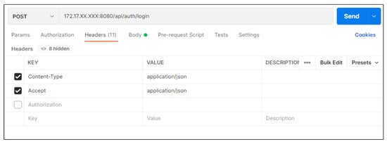 - After running Postman, send a POST request to obtain a JWT token using Table 4, as shown in Figure 13.